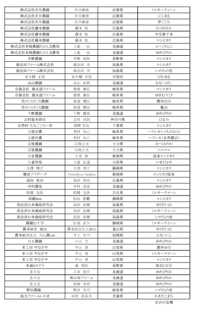 全87品種のお米が出品されました。